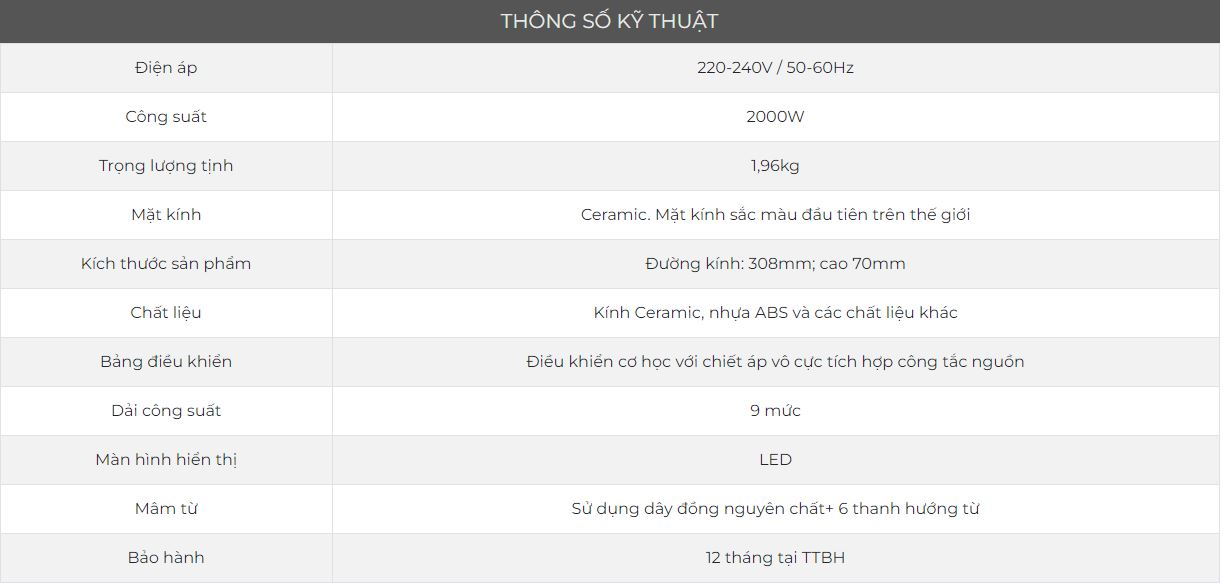 CEH-101-I sở hữu mặt kính CERAMIC cao cấp, cứng cáp và bền bỉ, chống va đập và trầy xước, độ bền nhiệt cao