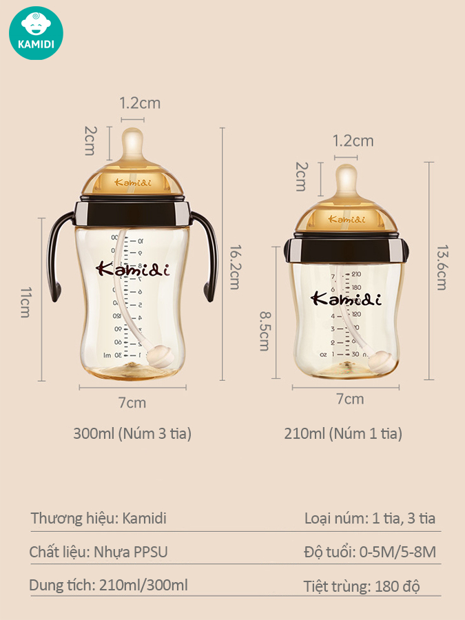 Bình Sữa Kamidi Chất Liệu PPSU Dung Tích 210ml