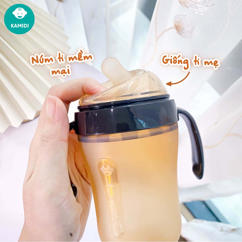 Bình sữa Kamidi silicon nâu cực kỳ an toàn cho bé: Ống hút silicone gắn bi trọng lực xoay 360 độ giúp bé bú được trong mọi tư thế, chống tràn sữa cực tốt. Với các loại bình trên thị trường thường mẹ sẽ phải dốc bình lên cho bé bú điều này làm con khó chịu và khi bé lớn hơn một chút sẽ không chịu hợp tác. Do đó dùng bình Kamidi bé sẽ có thể tự cầm bình uống ngon lành, tu ti đủ các tư thế nằm, ngồi, đứng.